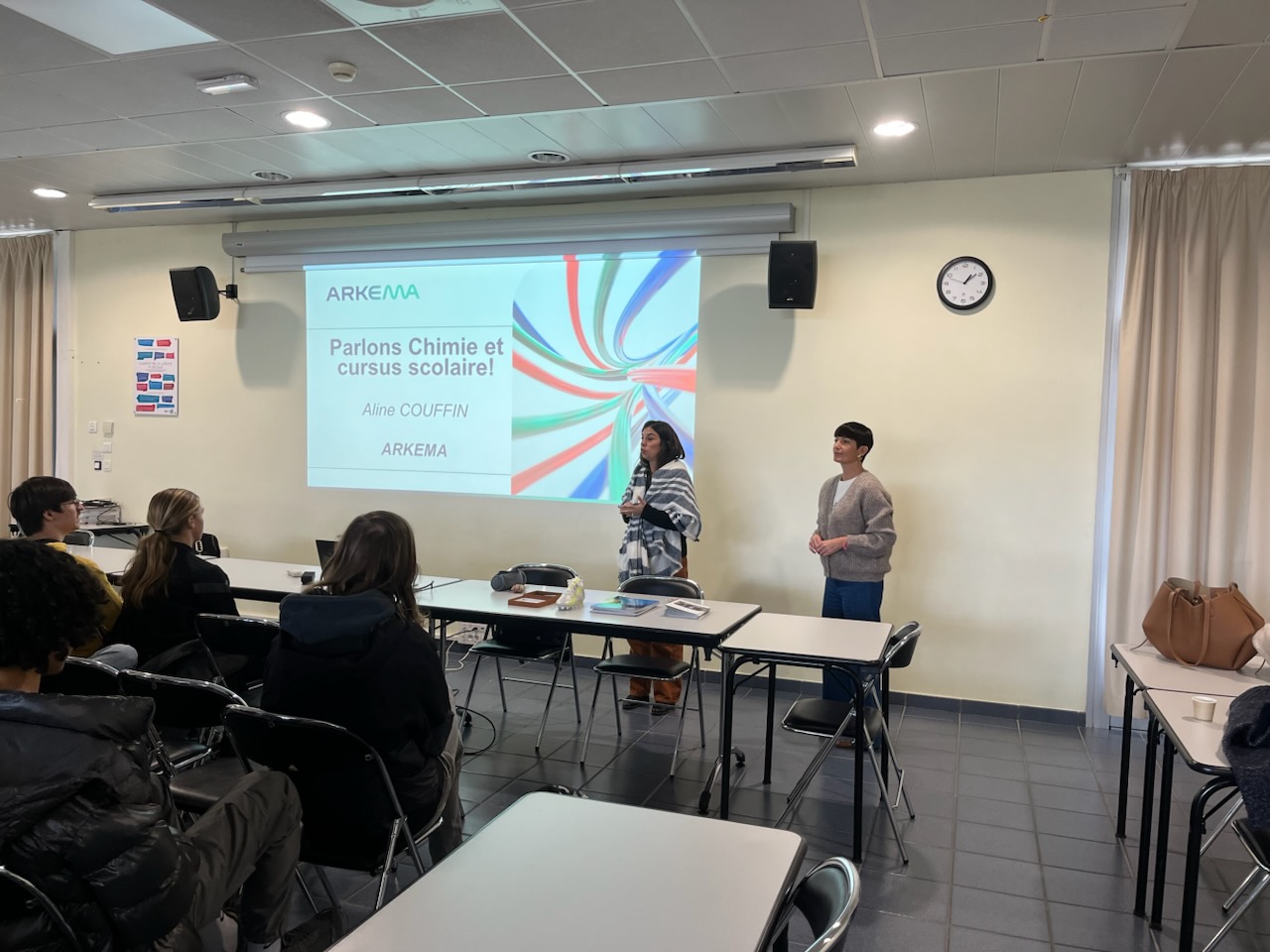 Dans le cadre du parcours avenir, présentation du parcours d'une chercheuse en chimie (ARKEMA) auprès des élèves de TBAC GT ...